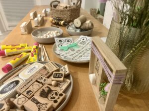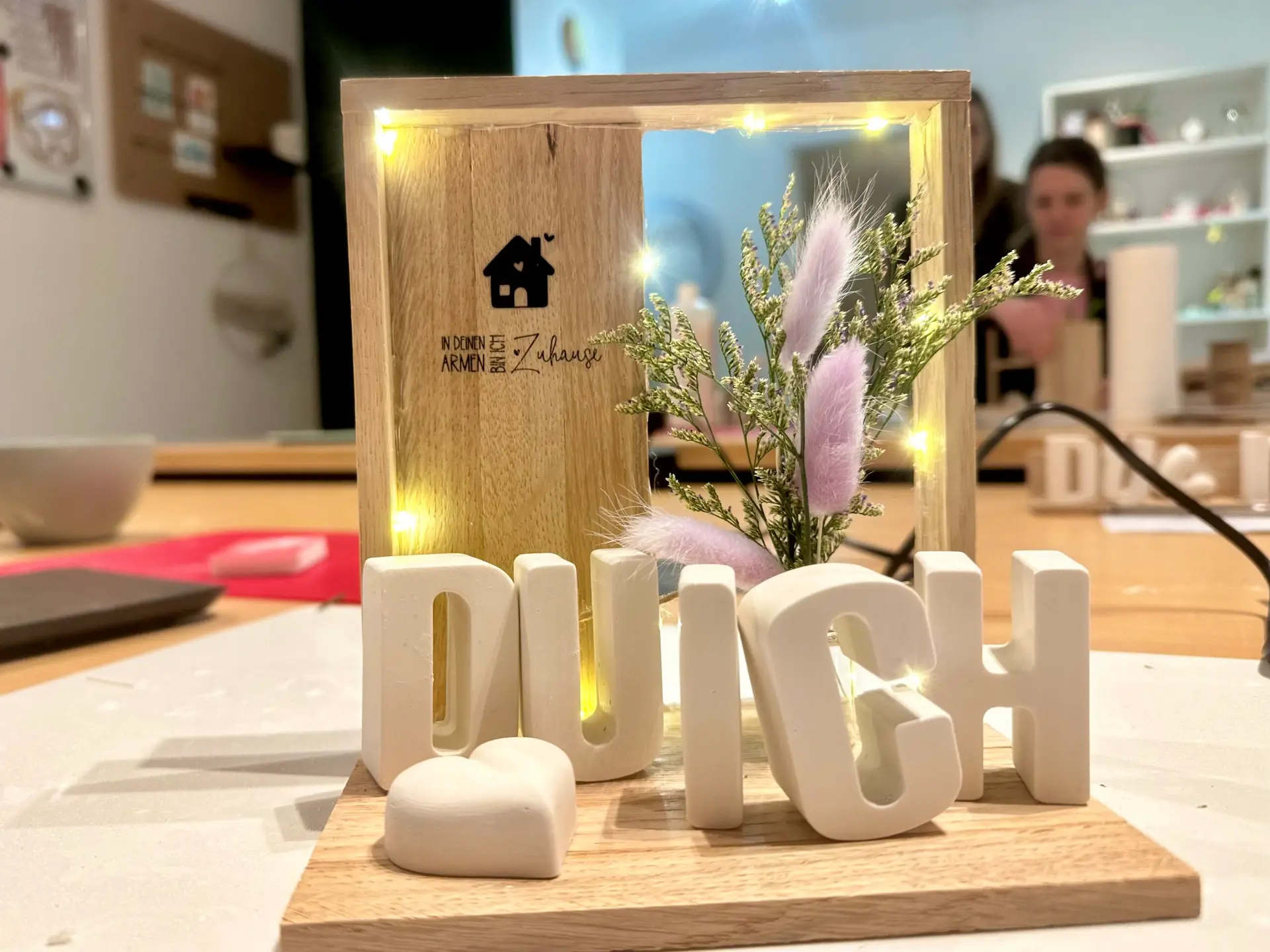 In entspannter Atmosphäre gestalten wir gemeinsam aus Acrylharz-Gips gegossene Buchstaben und Worte, die du anschließend auf liebevoll ausgewählten Holzklötzchen arrangierst. So entstehen ausdrucksstarke, festliche Oster-Designobjekte, die du mit nach Hause nehmen kannst – als Dekoration, Geschenkidee oder unvergessliche Erinnerung.